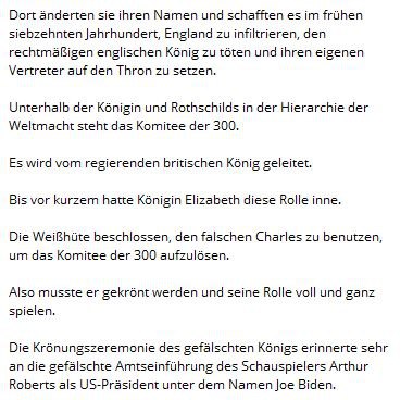 Die Akte König Charles III. dokumentiert ein völlig anderes Bild als es die Massenmedien tun. Diese vermitteln Millionen TV-Zuschauern in aller Welt gleichsam das Trugbild einer royalen Scheinwelt durch eine pompös inszenierte Krönung und blenden die Realität hinter den Mauern der prunkvollen Paläste aus.