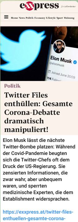 Letzte Woche war der erste Teil der von Musk groß angekündigten „Twitter Files“ herausgegeben worden. Darin ging es um den Verdacht, Twitter habe im US-Wahlkampf 2020 aktiv eingegriffen, um der Demokratischen Partei gegen den Republikaner Donald Trump zu helfen.