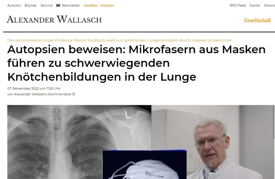 Es klingt zunächst wie eine Horror-Meldung aus der Waffenkammer alarmistischer Personen: Im überwiegenden Teil untersuchter Lungen von Maskenträgern sollen Granulome gefunden worden sein. Als Auslöser für diese Knötchenbildung habe man Mikrofasern von Masken identifiziert.