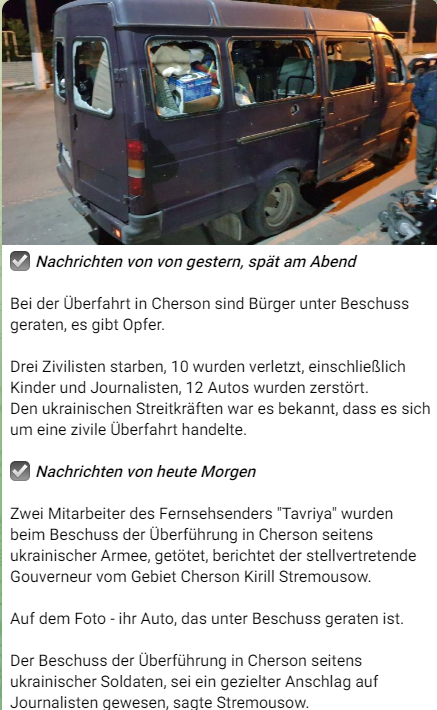 Damit dürfte dann auch für die ARD/ZDF Gläubigen klar werden warum zivile Einrichtungen von den Russen angegriffen werden