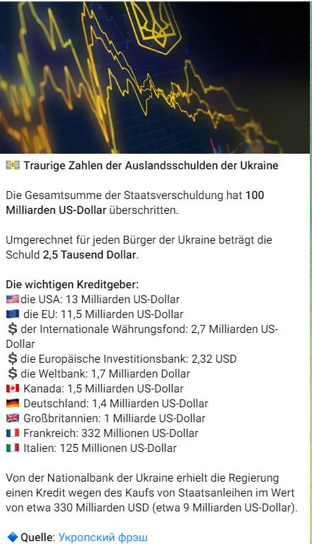 Über 100.000 ukrainische Soldaten wurden getötet und fast 400.000 verwundet. > ) //////Die absichtlich aufgebauten 600.000 ukrainischen Streitkräfte, die in den letzten 8 Jahren durch die Finanzierung und Projekte der Davos, BLACKROCK MONEY LAUNDERING, CIA UK mI6. NATO UM ECT ECT ECT ECT ECT ECT ECT ECT ECT ECT ECT....< Diese 600.000 Mann starken ukrainischen Streitkräfte wurden mehr und mehr ausgelöscht. Die verbleibenden Streitkräfte setzen sich aus Freiwilligen und einer großen Anzahl polnischer Soldaten zusammen (diese assimilierte Gruppe umfasst etwa 80.000 Mann).