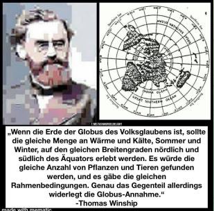 Übrigens hatte ich ihm vorgeschlagen, diese Karten, die ab dem Äquator nicht mehr stimmen, auf eine flache Erde Karte zu legen, weil sie da zu 100 Prozent genau passen. Eine Antwort hab ich leider nicht bekommen, weil ich gesperrt wurde.