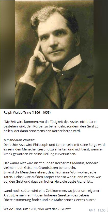 ...und noch spĂ€ter wird eine Zeit kommen, wo jeder sein eigener Arzt ist, je mehr er mit den höheren Gesetzen des Lebens Ăbereinstimmung findet und die KrĂ€fte seines Geistes nutzt."