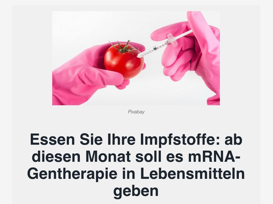 Jetzt wollen sie anfangen, Lebensmittel mit mRNA-Gentherapie zu versehen.