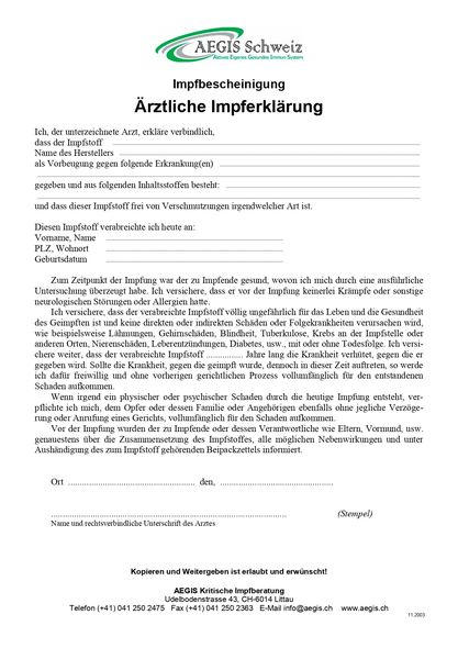 Hafterklärung & Impfbescheinigung:
