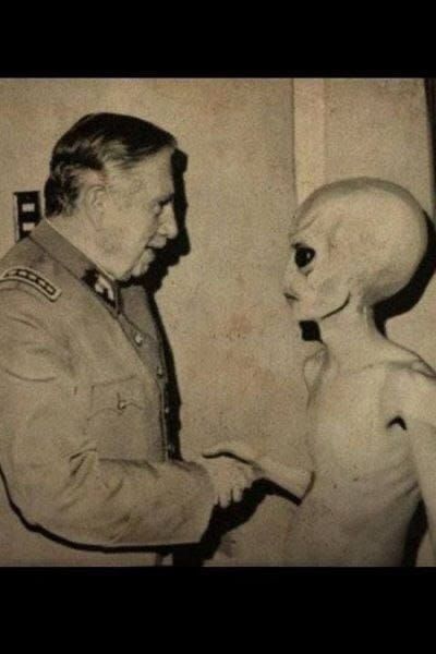 Der Russische Premierminister Dmitri Medwedjew, Von einer Journalistin des Senders Ren-TV wird er gefragt, ob er Geheiminformationen über Außerirdische habe. Darauf antwortet er mit ernsthafter Mine, der russische Präsident bekomme zusammen mit dem Atomkoffer zwei Mappen mit der Aufschrift „Streng geheim“.