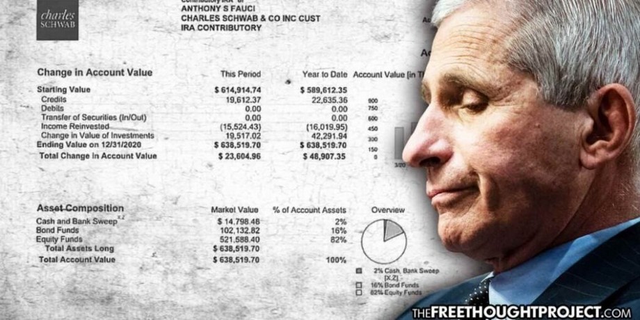 Zur Erinnerung: Dr. Fauci hat den Kongress wieder einmal belogen, indem er darauf bestand, dass seine Finanzen öffentlich seien, was sie aber nicht waren (bevor sie vom Senator aus Kansas durchsickern konnten).
