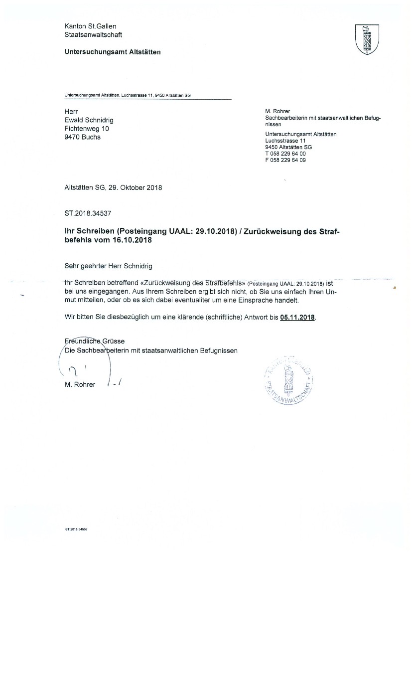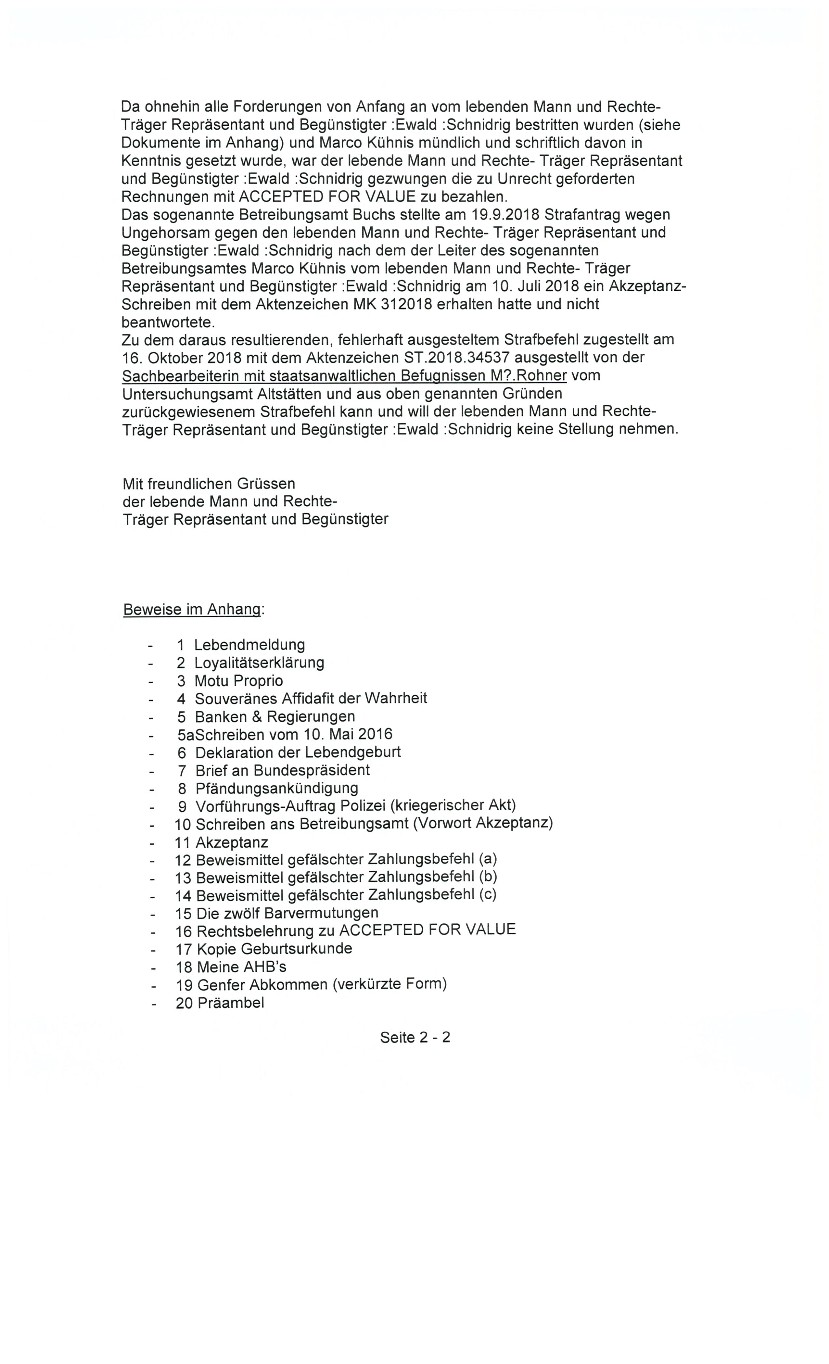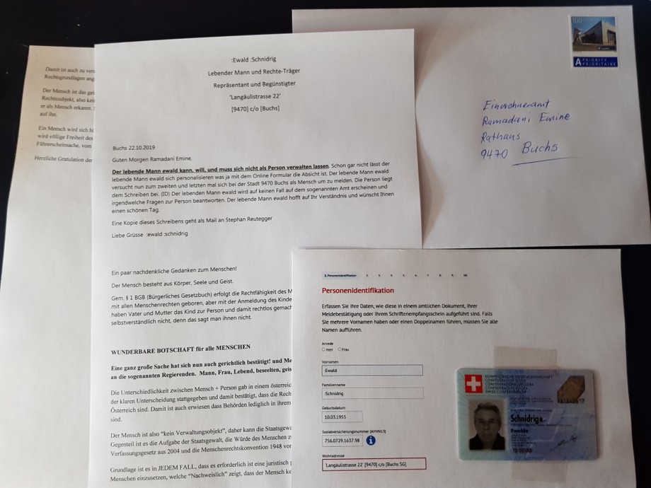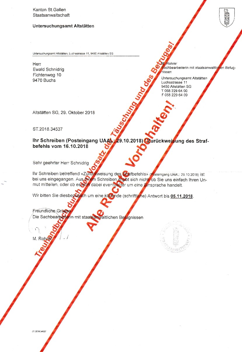 Im Oktober 2016 erhielt der lebende Mann ewald SCHNIDRIG wegen übertretender Geschwindigkeit auf der deutschen Autobahn nähe Köln eine Einladung zum Verhör nach Köln,