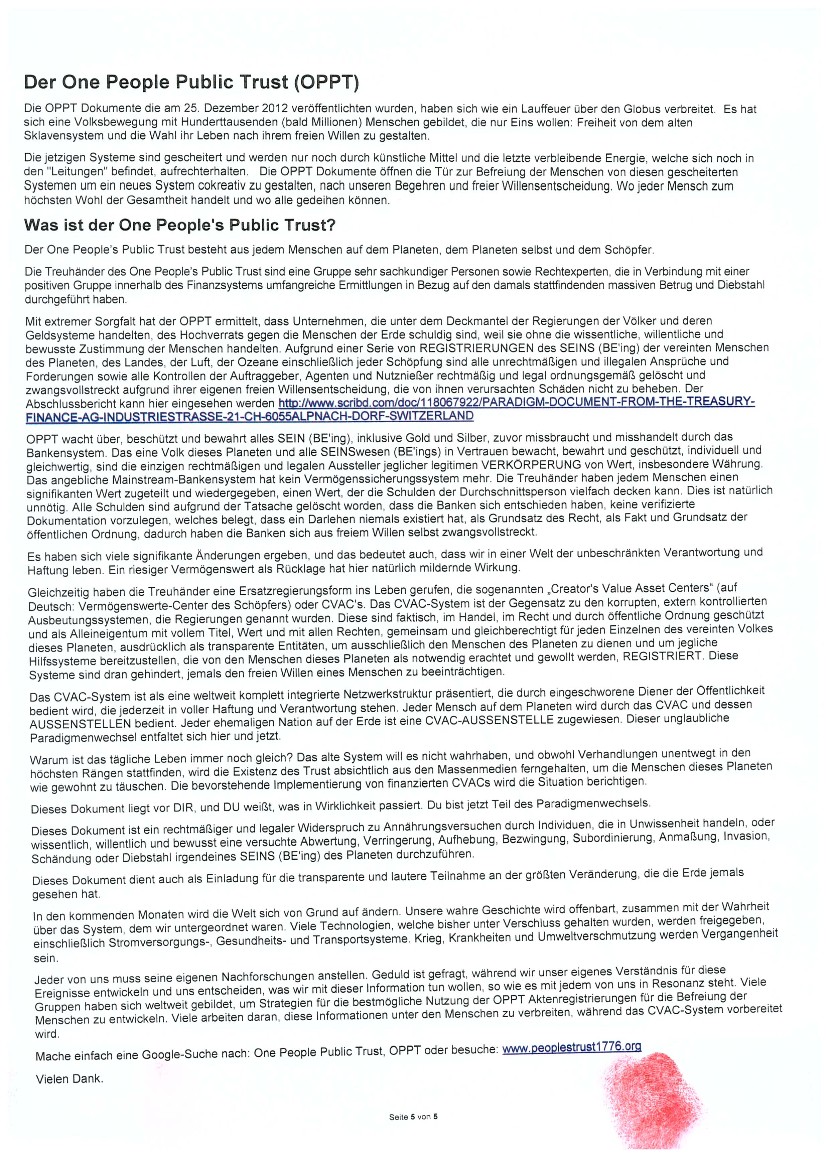 Ich schicke dieses Scheiben an diverse Stellen (sogenannten Ämter) und werde es zum Schutz und zur Aufklärung