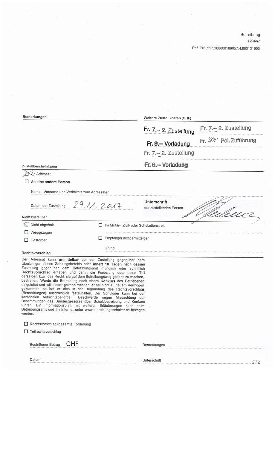 Gefälschte Unterschriften vom sogenannten Betreibungsbeamten