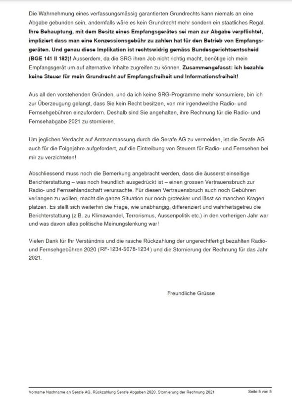 Dieses Schreiben wurde nach bestem Wissen, Gewissen und im guten Glauben verfasst und dient ausschliesslich der Transparenz von Verwaltungsvorgängen. Im Falle der Verweigerung muss der Gedanke erlaubt sein, dass man es mit kriminellen Elementen zu tun hat.
