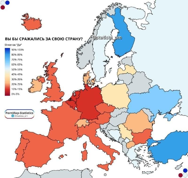 Eine sehr interessante Kartevon Europa, die das Niveaudes Patriotismus in verschiedenenLändern zeigt.