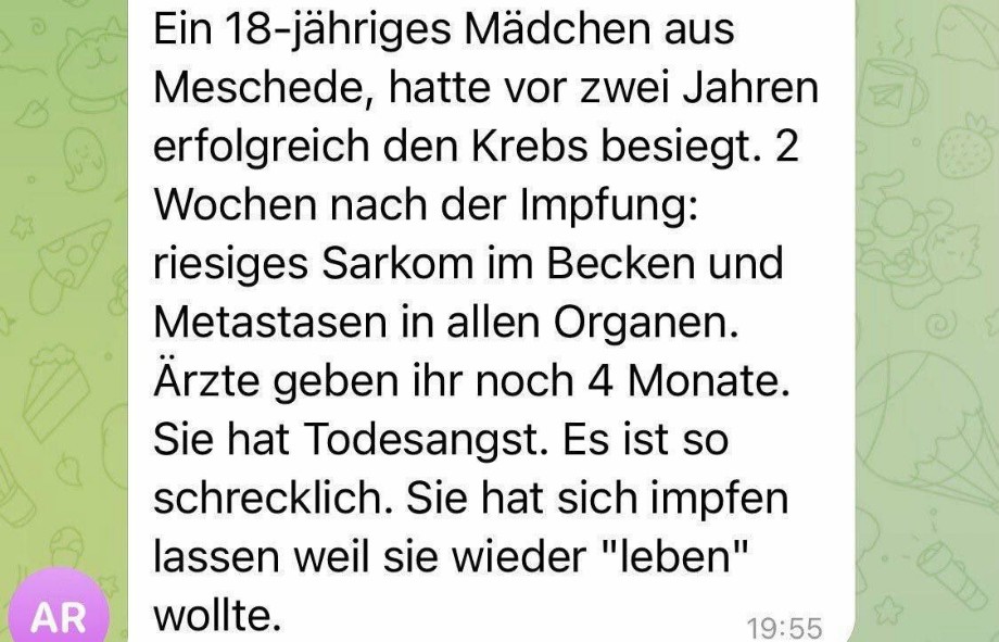 Zwei Bekannte Impf Fetichisten sagten zu mir , Lass dich impfen , Ungeimpfte sind Idioten usw. Und jetzt wird gejammert , Die eine hatt jetzt Lymphdrüsenkrebs und der andere Kehlkopfkrebs . 3×geimpft