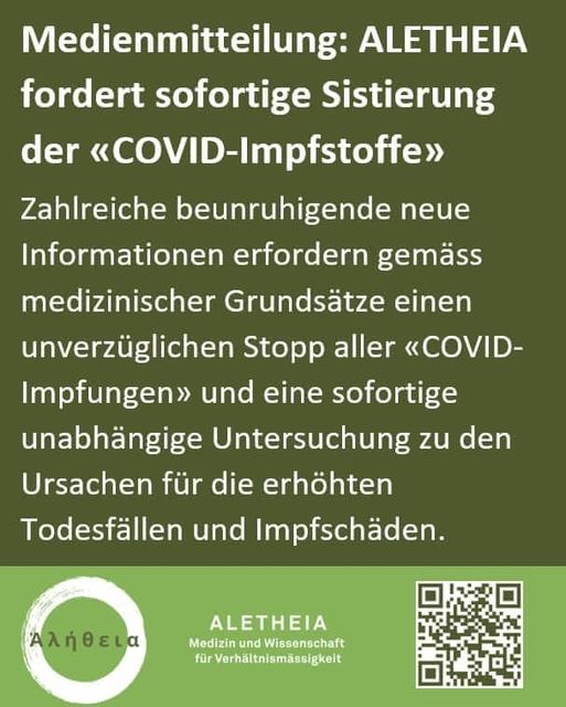 Wer sich mit "Gepieksten" unterhält, stellt fest, dass diese ganz unterschiedliche Erfahrungen mit der Covid-"Impfung" machen. Die einen haben überhaupt keine körperlichen Reaktionen, andere wiederum sehr starke, und viele Fälle sind belegt, wo Geimpfte kurze Zeit nach der Injektion verstarben. Die unterschiedlichen Reaktionen haben damit zu tun, dass im Rahmen der Studie verschiedene "Chargen" gespritzt werden. A: eine komplett harmlose Placebo-Charge in Form einer Kochsalz-Lösung. B: eine Kombination von Placebo und dem experimentellen, genbasierten "Impfstoff". C: die "volle Ladung". Nach welchen Kriterien werden die verschiedenen "Chargen" verabreicht? Swissmedic verschleiert. Das ALETHEIA Wissenschaftsteam kam am 7. Juli zum Schluss, dass die gesetzlichen Anforderungen für eine befristete Zulassung nicht erfüllt sind, und forderte Swissmedic in einem offenen Brief zur sofortigen Sistierung der befristete Zulassung der Covid-19 Impfstoffe auf.