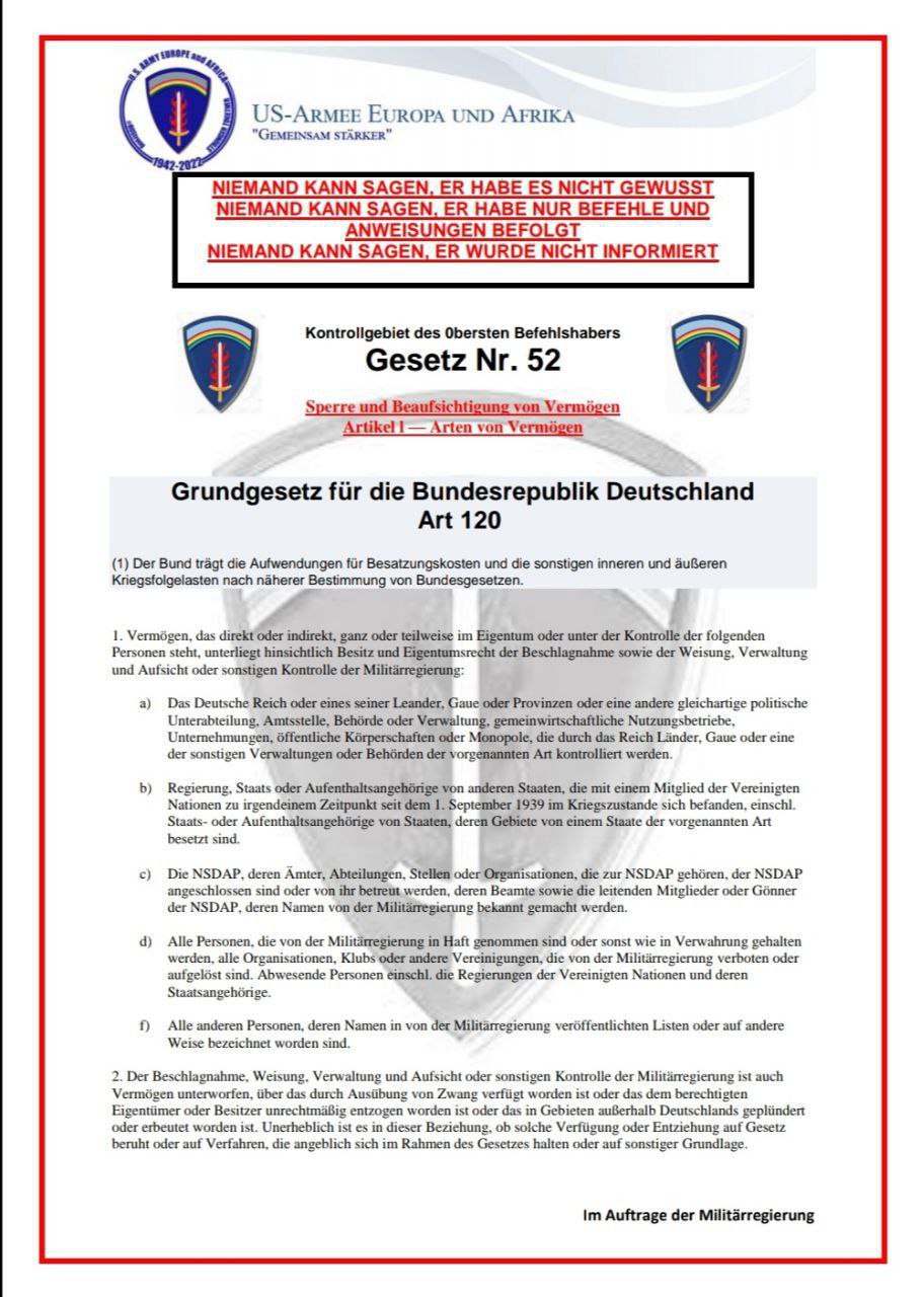 SHAEF Gesetz Nr 52 wird gerade vor unser aller Augen umgesetzt.