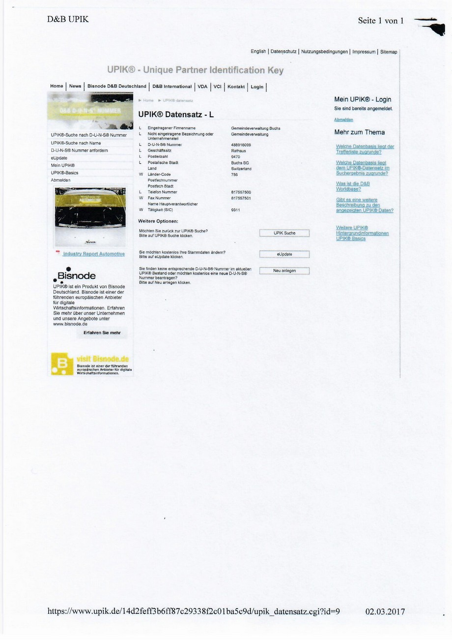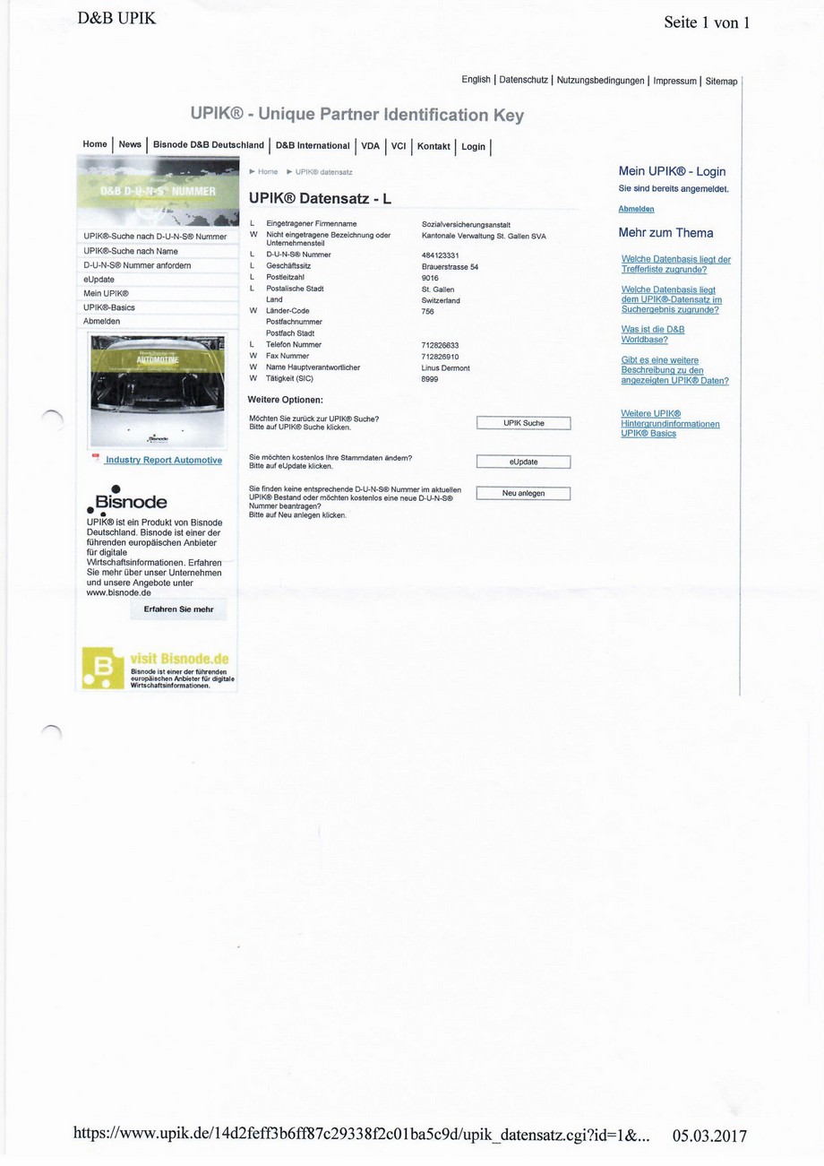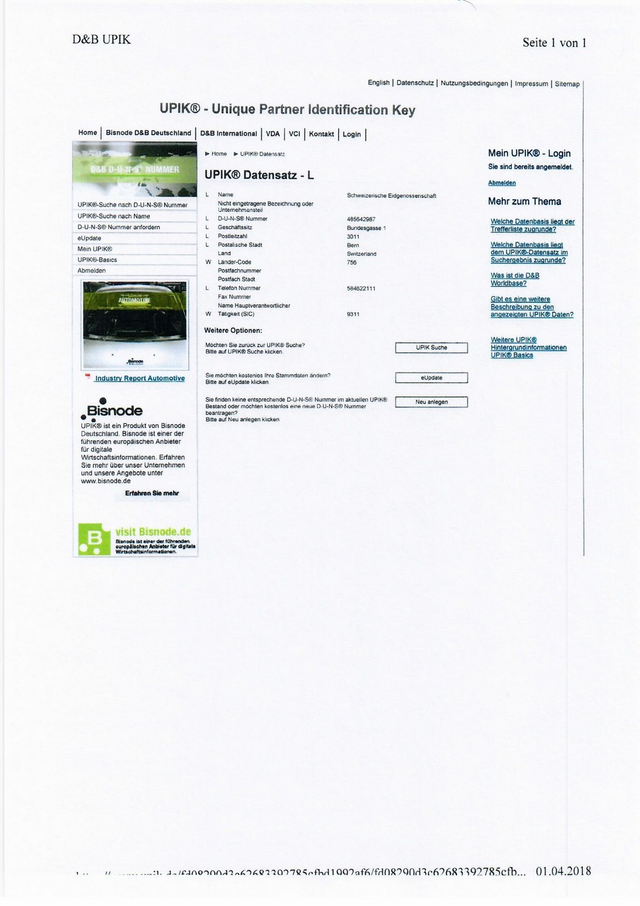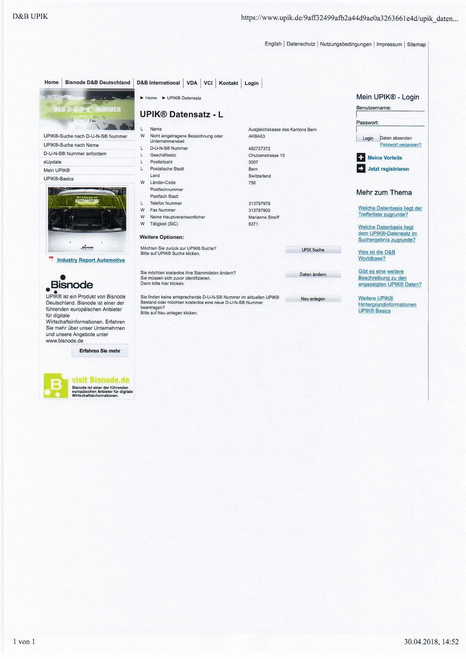 Im Internet sind alle D-U-N-S® Nummern zu finden. Google-Eingabe: D-U-N-S® Nummer finden!