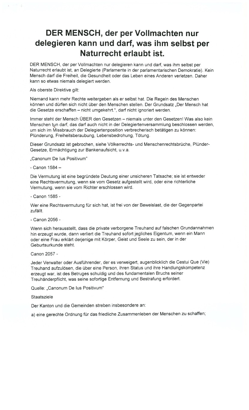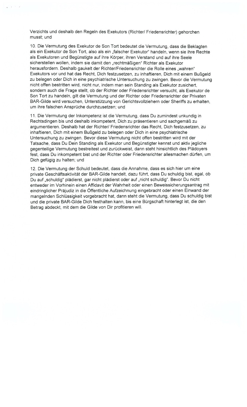 Sollte ein Mensch Handlungen im Namen einer zwangsvollstreckten Bank oder “Regierung” vornehmen und dadurch, wie