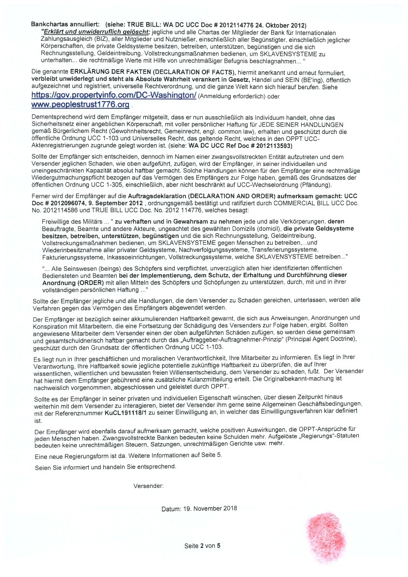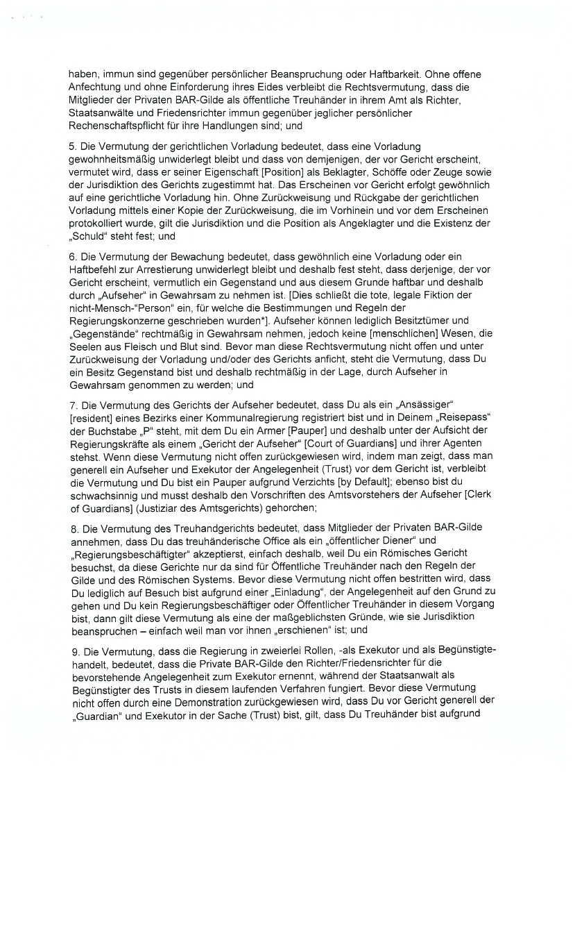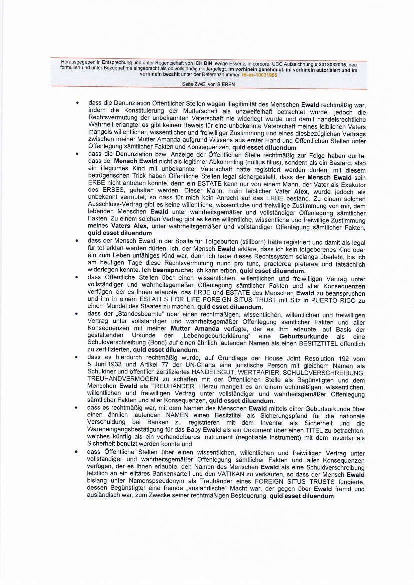 "...Dass jegliche und alle CHARTAS, einschließlich der United States Federal Government, UNITED STATES, "State of.