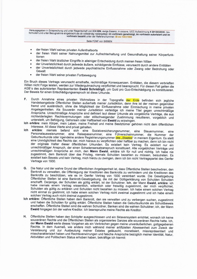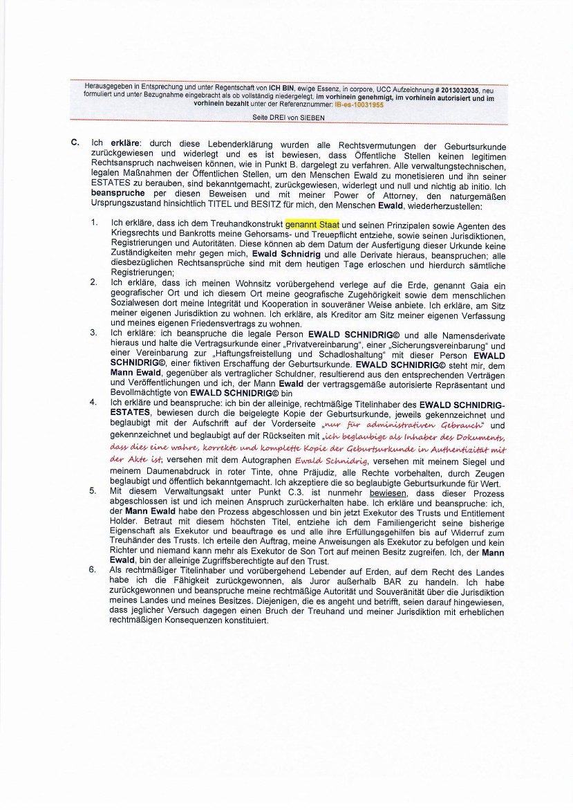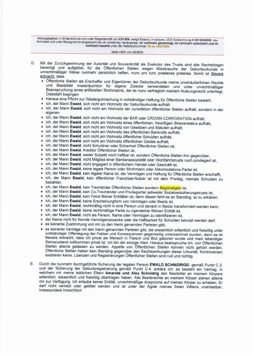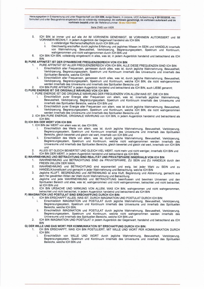 "...Alle Seinswesen (BEings) des Schöpfers sind verpflichtet, unverzüglich allen hier identifizierten öffentlichen