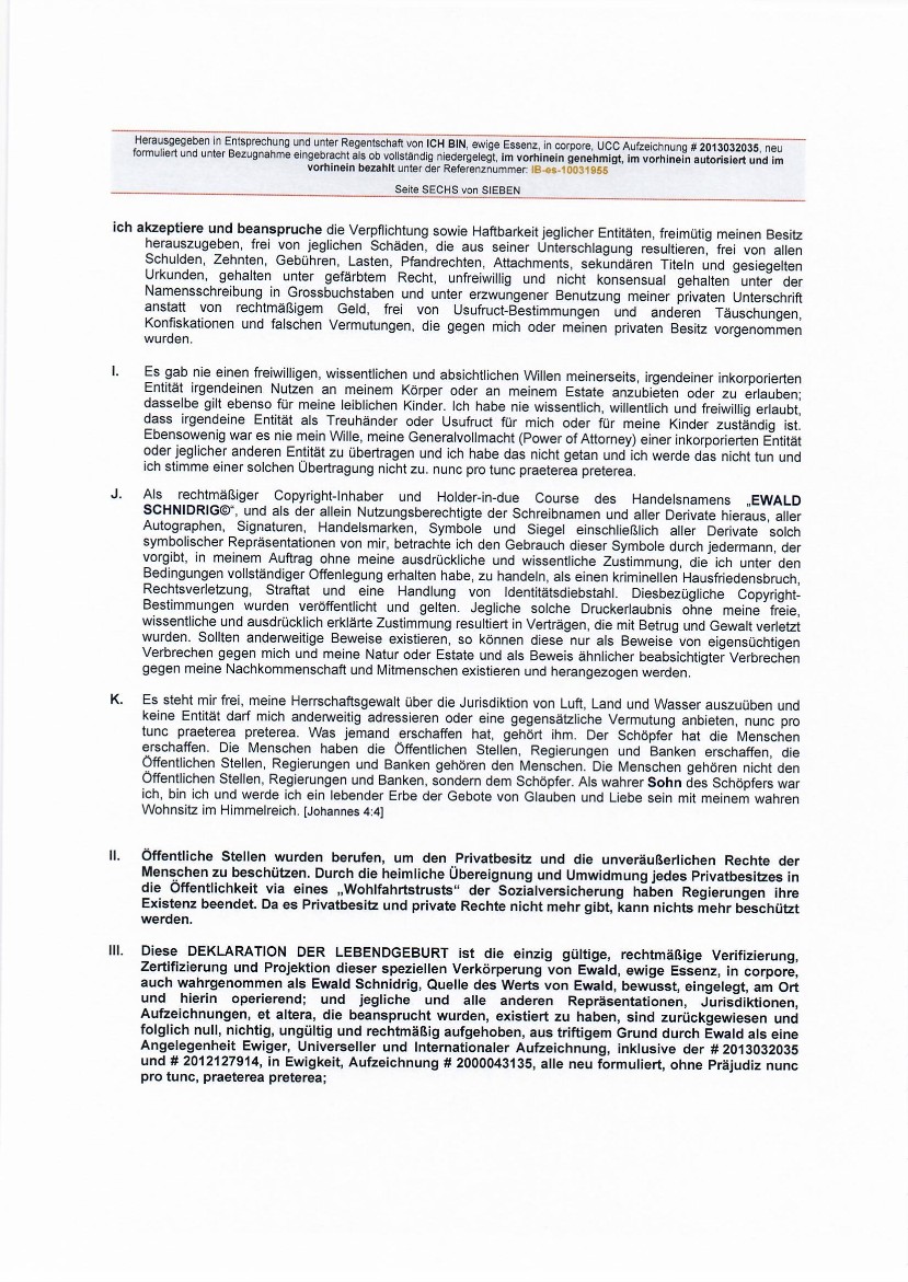 (siehe: ERKLÄRUNG DER FAKTEN (DFECLARATION OF FACTS): UCC Doc # 2012127914 28. November 2012)