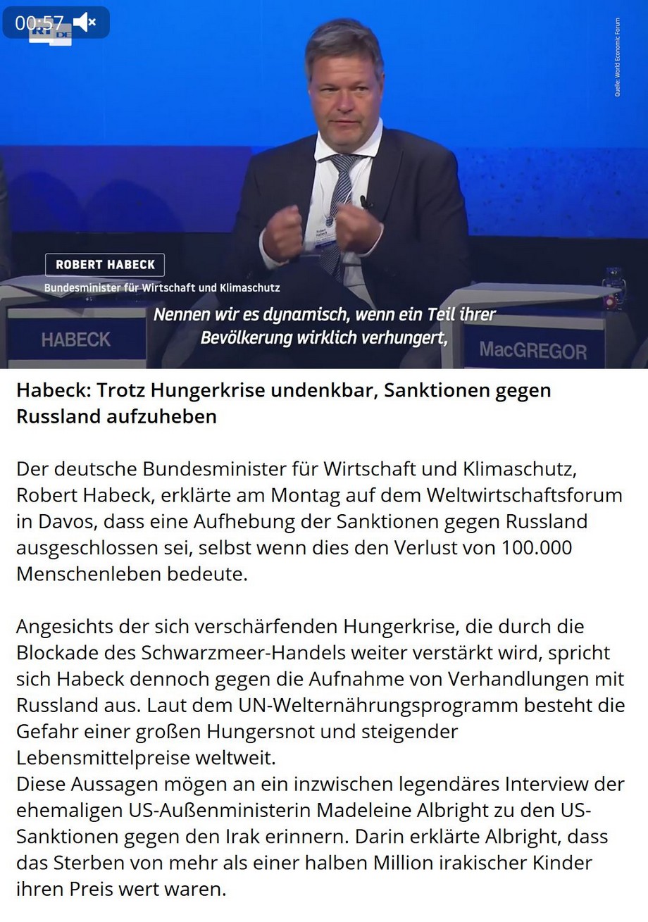 Robert Habeck (Grüne), Bundesminister und Stellvertreter des amtierenden Bundeskanzlers Olaf Scholz findet das Model Demokratie nicht mehr zeitgemäß und es sollte durch ein System aus China ersetzt werden, in dem es keine Opposition mehr gibt?! Diese Aussage wäre in einem normalen demokratischen Land normalerweise der Skandal des Jahres und dieser Politiker müsste sofort sein Amt ablegen und zurücktreten...hier in Deutschland scheint es irgendwie niemand zu interessieren